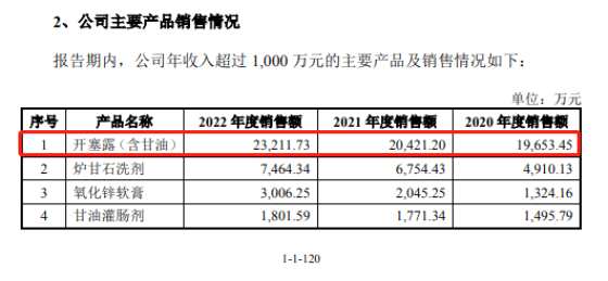 此外,小方制藥招股書披露還存在自相矛盾之外。公司引用米內(nèi)網(wǎng)數(shù)據(jù)顯示,2020年至2022年,國內(nèi)開塞露市場規(guī)模約7.677億元、9.08億元和9.83億元。小方制藥市場份額分別為17.57%、16.06%和 16.42%。由此推算,2020年至2022年,小方制藥開塞露銷售額約為1.348億元、1.458億元和1.614億元。但招股書又披露,上述年度,小方制藥開塞露銷售額1.97億元、2.04億元和2.31億元,這與對應(yīng)的市場份額并不一致,小方制藥并未解釋上述差異的原因。
