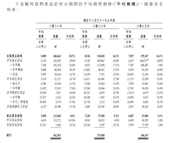 武漢有機(jī)控股在招股書中稱,由于國(guó)內(nèi)及國(guó)際經(jīng)濟(jì)放緩,下游需求疲軟及甲苯氧化產(chǎn)品市場(chǎng)供應(yīng)增加導(dǎo)致市場(chǎng)競(jìng)爭(zhēng)加劇。為此,公司通過(guò)降價(jià)策略保持市場(chǎng)份額。受價(jià)格戰(zhàn)影響,公司的產(chǎn)品總銷量及自制產(chǎn)品平均售價(jià)均出現(xiàn)下滑。其中,產(chǎn)品總銷量由2022年的約37.58萬(wàn)噸下降至2023年的34.61萬(wàn)噸,同期自制產(chǎn)品的平均售價(jià)則從每噸8536元下跌至每噸7957元,最終導(dǎo)致2023年的收入、凈利大幅減少。