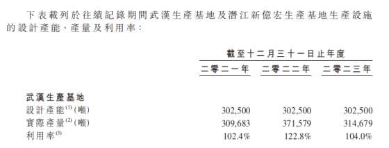 需要指出的是,曾因火災(zāi)事故遭通報(bào)的武漢生產(chǎn)基地,近3年持續(xù)高負(fù)荷運(yùn)轉(zhuǎn),其實(shí)際產(chǎn)量遠(yuǎn)高于設(shè)計(jì)產(chǎn)能30.25萬(wàn)噸。尤其是2022年,實(shí)際產(chǎn)能高達(dá)37.16萬(wàn)噸,超過(guò)計(jì)劃產(chǎn)能近7萬(wàn)噸,產(chǎn)能利用率高達(dá)122.8%,位列近3年最高。直到2023年,武漢生產(chǎn)基地的實(shí)際產(chǎn)量仍高于設(shè)計(jì)產(chǎn)能。
