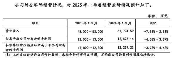 2025年一季度,海安橡膠預(yù)計(jì)實(shí)現(xiàn)營業(yè)收入4.8億元-5.3億元,同比變動(dòng)幅度為-7.33%-2.33%;預(yù)計(jì)歸母凈利潤1.2億元-1.3億元,同比變動(dòng)幅度-4.58%-3.37%。