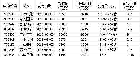 下周發(fā)行新股一覽