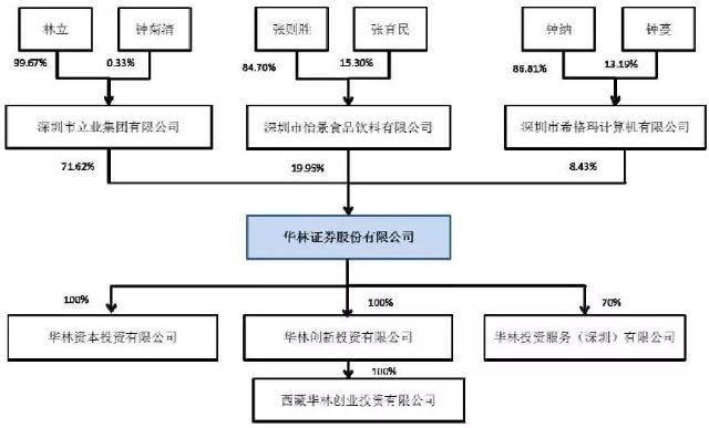 持有華林證券8.43%的深圳市希格瑪計算機技術(shù)有限公司,則由自然人鐘納、鐘蔓持有,持股比例分別為86.81%和13.19%。而鐘納與林立則是表兄弟。