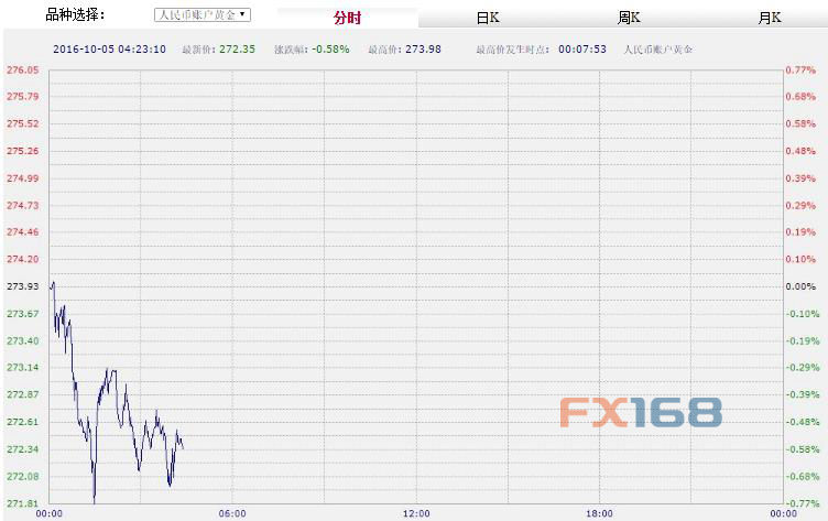 北京時(shí)間04:23,中國(guó)工商銀行紙黃金下跌0.58%,報(bào)272.35元/克。