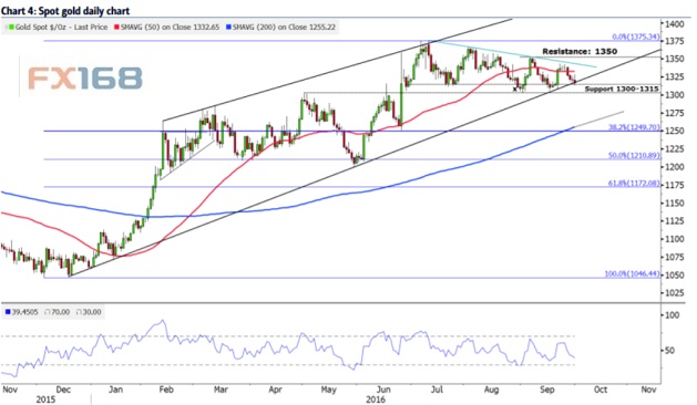 該行認為,如果金價跌破1300美元,之后可能進一步回調(diào)向38.2%回撤位1250美元。同時,如果多空倉位出現(xiàn)更大轉(zhuǎn)化,金價甚至可能跌至1210美元。