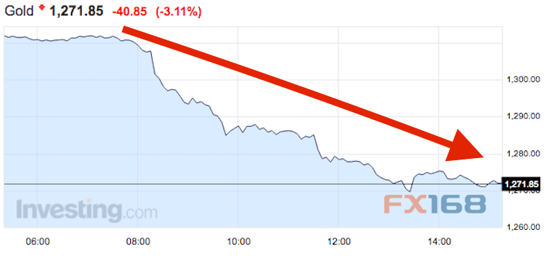 周二紐約尾盤,現(xiàn)貨金急跌3.1%,報1,270.31美元/盎司。