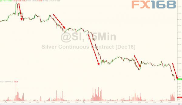 (現(xiàn)貨白銀15分鐘走勢(shì)圖,來(lái)源:Zerohedge、FX168財(cái)經(jīng)網(wǎng))