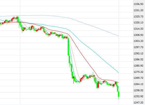 黃金本周遭遇“滑鐵盧”,跌破1300美元/盎司心理關(guān)口之后跌勢(shì)愈演愈烈。歐市盤中,現(xiàn)貨黃金跌破1260美元/盎司關(guān)口,至6月24日以來(lái)最低水平1250.40美元/盎司,跌勢(shì)擴(kuò)大至超1%。周二,現(xiàn)貨黃金錄得三年以來(lái)最大日線跌幅,前一交易日觸及6月24日以來(lái)最低水平1261.59美元/盎司。