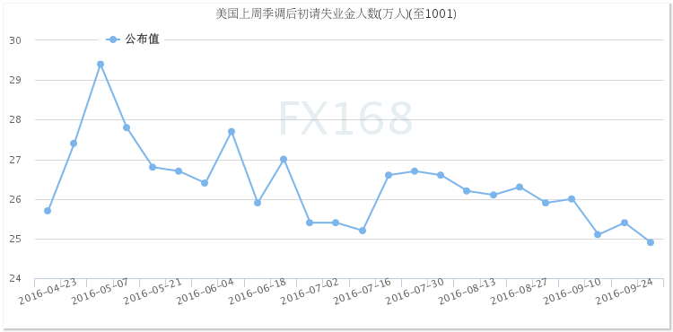 (美國(guó)初請(qǐng)失業(yè)金人數(shù)走勢(shì)圖,來(lái)源:FX168財(cái)經(jīng)網(wǎng))
