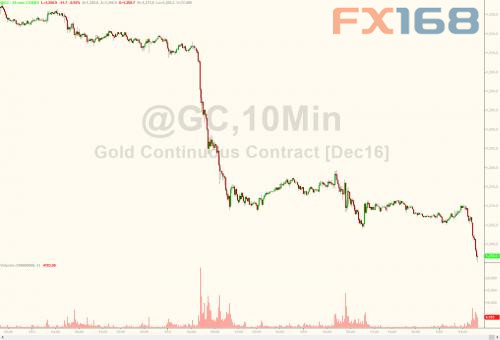 金融博客網(wǎng)站Zerohedge撰文指出,近日我們對金價大跌感到憂心忡忡,昨日我們曾指出金價可能會觸及1305-1310美元/盎司區(qū)域,此后止損賣盤可能會蜂擁而至。不過,我們原以為止損賣盤的跟進并不會如此嚴峻。實際上,我們原本期望賣壓將很快減弱,最終或發(fā)生逆轉(zhuǎn),但實際走勢并非如此。