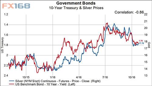 FX168財經(jīng)報社(香港)訊 Eric Bush周四(10月27日)在博客網(wǎng)站Gavekal Capital上撰文指出,自2015年夏季以來,做多黃金基本等同于做多美國10年期國債(白銀與美債亦亦步亦趨)。