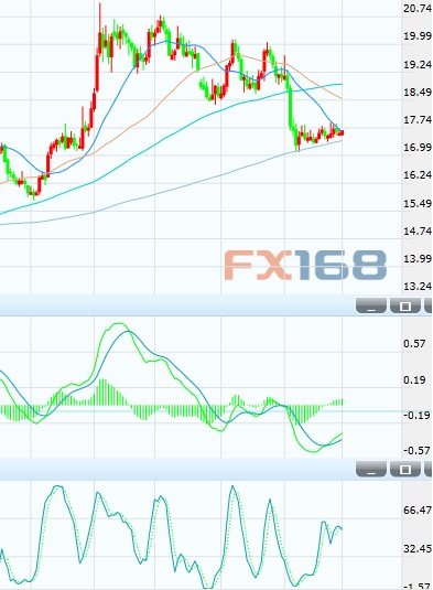 目前銀價的初步阻力位于17.85/88美元,進(jìn)一步阻力在18、18.25、18.75、19、19.43、19.70以及20美元。下行方面,初步支撐17.40美元,進(jìn)一步支撐在17.16/11、17、16.50以及16美元。