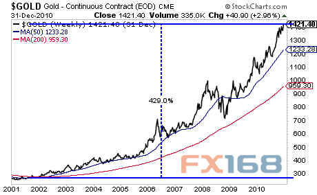 在接下來的9年內(nèi),金價漲幅高達429%,漲幅可謂令人難以置信。