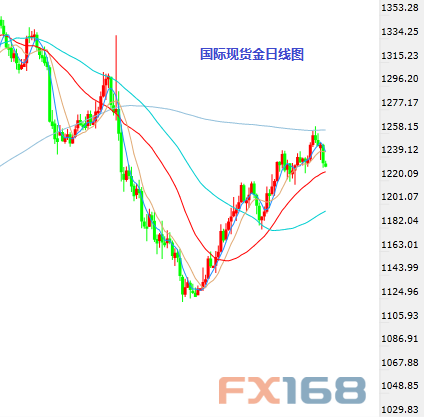 (現(xiàn)貨黃金日?qǐng)DK線,來源:24K99圖形分析、FX168財(cái)經(jīng)網(wǎng))