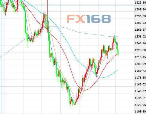北京時間00:44,現(xiàn)貨黃金報1224.33美元/盎司,下跌9.77美元,跌幅0.79%。