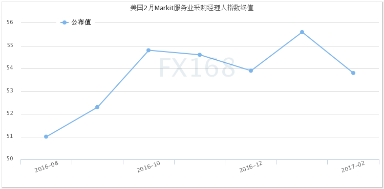 數(shù)據(jù)顯示,美國2月MARKIT服務(wù)業(yè)采購經(jīng)理人指數(shù)(PMI)終值為53.8,初值為53.9,1月終值為55.6。