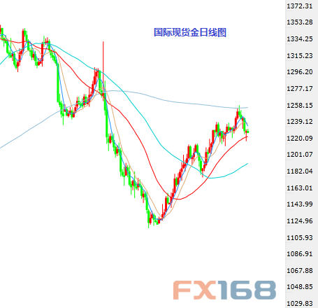 (現(xiàn)貨黃金日?qǐng)DK線,來源:24K99圖形分析、FX168財(cái)經(jīng)網(wǎng))