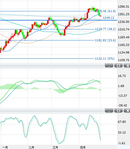 4月26日黃金投資晨報(bào):失守20日均線 短期可能看向1250