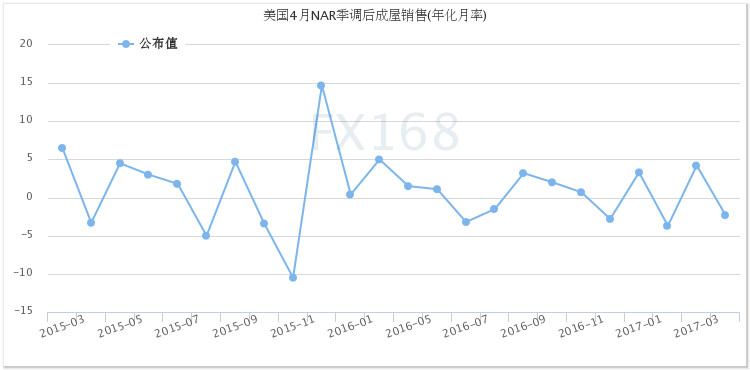 (美國季調(diào)后成屋銷售月率走勢圖,來源:FX168財經(jīng)網(wǎng))