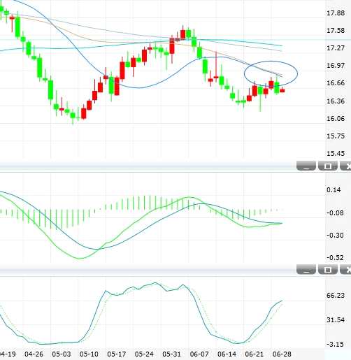 白銀周五(6月30日)亞洲時(shí)段微幅上揚(yáng),盤中最高觸及16.71美元/盎司。上方初步阻力為16.90美元,下方主要支撐在16.30美元。