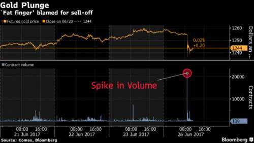 這一舉動背后并未明顯的驅動力,彭博表示其可能源于“胖手指”錯誤,但許多人表示懷疑,隨著黃金的崩跌被美元/日元的飆升所抵消,其一度跳升至0.35%至111.66,他們認為其要么是受算數(shù)交易要么是受央行干預所影響。