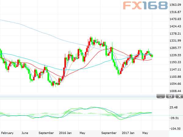 國際現(xiàn)貨黃金6月30日當周累計收跌15.20美元,跌幅1.21%,收報1241.40美元/盎司,最高上探1258.04美元/盎司,最低下探1236.46美元/盎司。