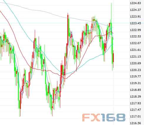 北京時間02:33,現(xiàn)貨黃金報1220.37美元/盎司,下跌3.23美元,跌幅0.26%。