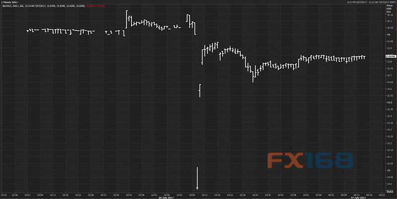 F 據海外知名財經網站Business Insider周五(7月7日)報道稱,周五亞市早盤,現(xiàn)貨白銀市場遭遇了一場閃崩,為周五非農報告之前原本沉悶的亞洲時段交易帶來一些刺激因素。