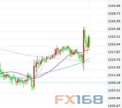 北京時間11:30,現(xiàn)貨黃金報1219.610美元/盎司,上漲2.55美元,漲幅0.21%。