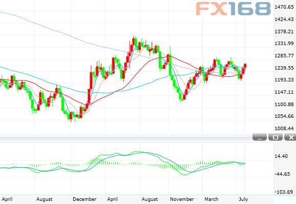 (現(xiàn)貨黃金周線圖 來源:FX168財經(jīng)網(wǎng))