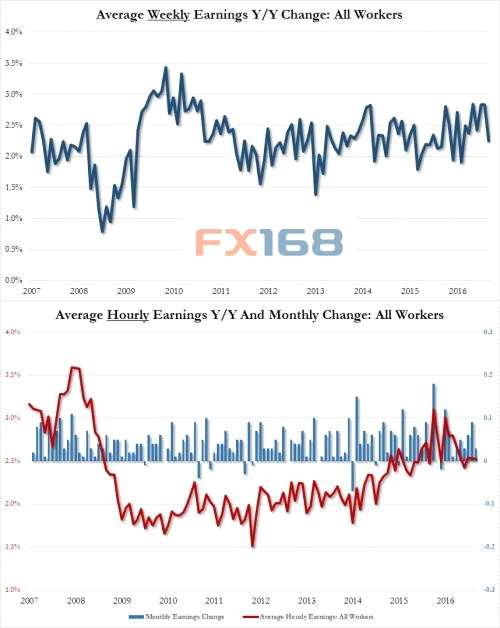 (圖為美國平均每小時薪資走勢 來源:FX168財經網、Zerohedge)
