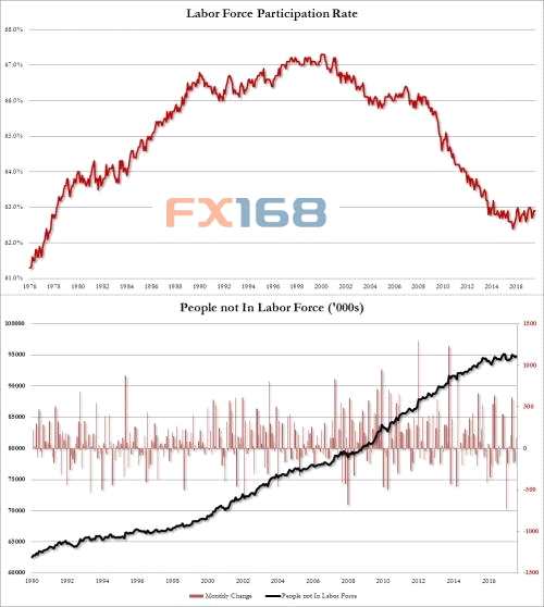 (圖為:美國勞動參與率 來源:FX168財經網、Zerohedge)