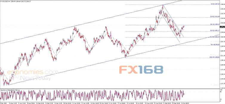 F 資訊網(wǎng)站Economies.com在周五(10月13日)發(fā)布的報告中稱,金價已經(jīng)抵達1299.20美元/盎司的水平,等待進一步上漲至目標位1321.49美元/盎司。