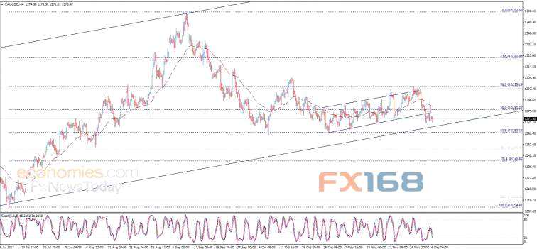 F 資訊網(wǎng)站Economies.com在周一(12月4日)發(fā)布的報告中稱,黃金早盤下挫,圍繞1275.00美元/盎司波動,只要金價企穩(wěn)在1281.17美元/盎司下方,日內(nèi)看跌仍然有效,等待金價跌至1263.15美元/盎司的目標位,若下破該目標位,將會延伸跌勢至1240.85美元/盎司。
