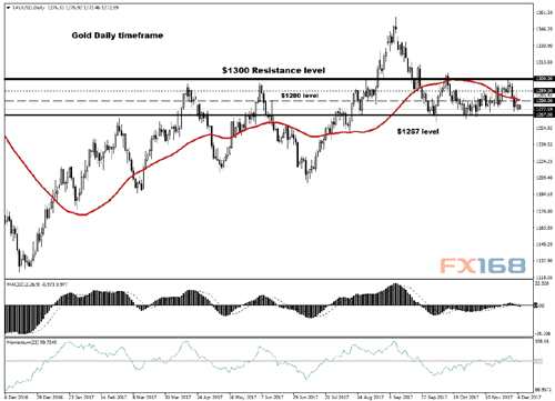 從技術(shù)角度來(lái)看,如持續(xù)在1280美元/盎司關(guān)口下方走軟,在即將公布的非農(nóng)報(bào)告之前,黃金可能會(huì)進(jìn)一步下跌至1267美元/盎司。