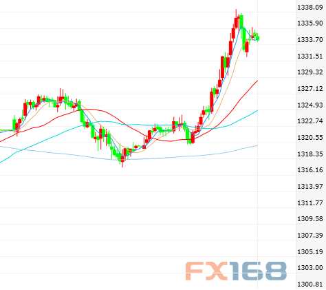 現(xiàn)貨黃金達(dá)到1338.55美元/盎司,為2月26日以來的最高水平。其以強(qiáng)烈的看漲基調(diào)維持在峰值附近。