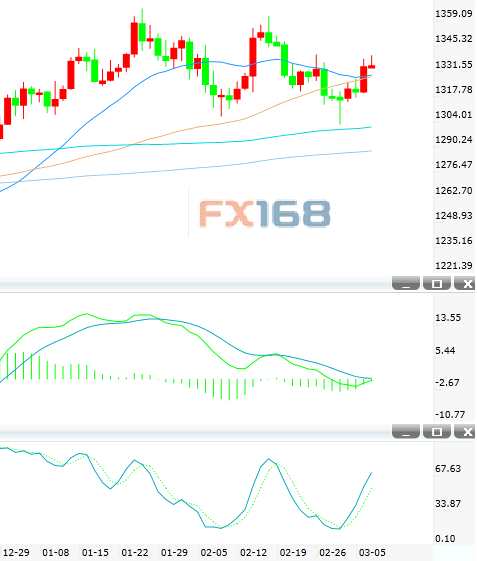 操作策略方面,周二曾建議利用金價(jià)向1330-1333美元反彈的機(jī)會(huì)輕倉(cāng)逢高做空,止損設(shè)1336美元上方,目標(biāo)看1324-1321美元。從當(dāng)天表現(xiàn)來(lái)看,止損被掃,策略失效。 【3月6日黃金投資晨報(bào)】