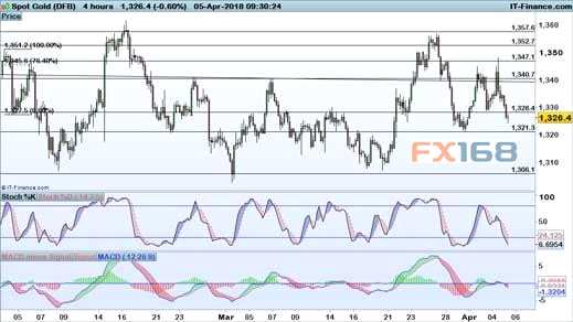?。S金4小時(shí)圖,來(lái)源:IG、FX168財(cái)經(jīng)網(wǎng))