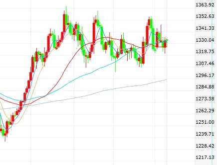 F 現(xiàn)貨黃金周一(4月9日)小幅反彈,美市盤中最高上探至1334.70美元/盎司后轉(zhuǎn)入盤整,金價在1330一線窄幅波動。周一美股繼續(xù)大漲,市場風(fēng)險情緒有所回歸,這對黃金構(gòu)成一定壓力,但美元周一繼續(xù)下挫給金價一定的支撐。日內(nèi)無重大數(shù)據(jù)公布。