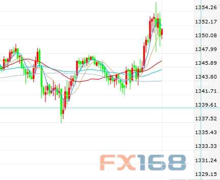 F 現(xiàn)貨黃金周三(4月18日)小幅反彈,美市盤中最高上探至1355.74美元/盎司,金價(jià)運(yùn)行在1340一線上方,金價(jià)在技術(shù)性買盤的支撐下從日內(nèi)低點(diǎn)攀升。從金價(jià)目前的日線技術(shù)圖看,對(duì)多頭有利,激發(fā)了技術(shù)性買盤的興趣。