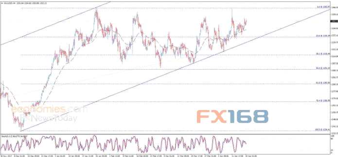 摘要: F資訊網站Economies.com在周四(4月19日)發(fā)布的報告中稱,黃金早盤顯示盤整跡象,金價圍繞在1350一線波動,金價企穩(wěn)在1335.40美元/盎司上方,受到50日均線來自下方的支撐,日內看漲