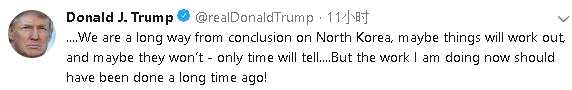 特朗普周日表示,“要想在朝鮮問(wèn)題上有個(gè)結(jié)論,我們還有很長(zhǎng)的路要走。有可能會(huì)達(dá)成協(xié)議,也有可能不會(huì),只有時(shí)間能說(shuō)明一切?!?/strong>