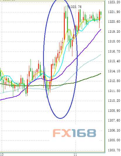 隔夜現(xiàn)貨金終于實(shí)現(xiàn)大突破,美國(guó)CPI意外爆冷后重創(chuàng)美元,黃金趁機(jī)上揚(yáng),一舉攻克1320關(guān)口,并且成功收于該位上方,該水平在近兩周一直構(gòu)成壓制。