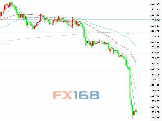 F 現(xiàn)貨黃金周二(5月15日)在巨量賣盤的拋壓下暴跌,金價直線下墜,美市盤中最低下探至1291.80美元/盎司,觸及年內(nèi)低位,金價已跌破1300大關(guān),日內(nèi)跌去近20美元。美元周二則重啟漲勢,美指重返93關(guān)口,走強的美元對黃金構(gòu)成很大壓力。