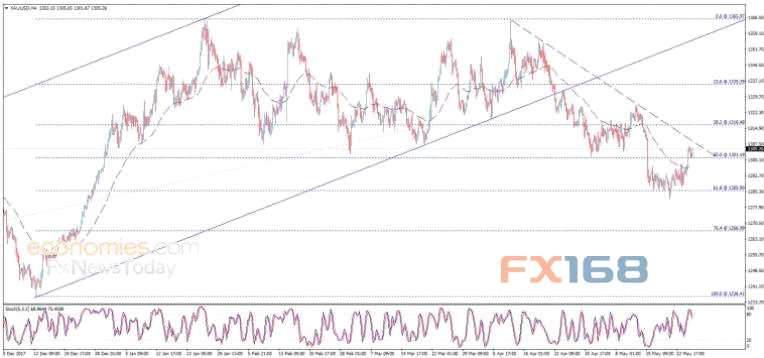 在周五(5月25日)發(fā)布的報(bào)告中稱,金價(jià)測(cè)試在1301.20美元/盎司上方的支撐位,此前曾跌破此位,后又從此位反彈上漲,支撐了我們?cè)诮酉聛?lái)的交易中繼續(xù)看漲的觀點(diǎn),50日均從下方支撐,等待金價(jià)突破1335.40美元/盎司的目標(biāo)位,然而下破1301.20美元/盎司將會(huì)停止預(yù)期中的上漲重返跌勢(shì)。