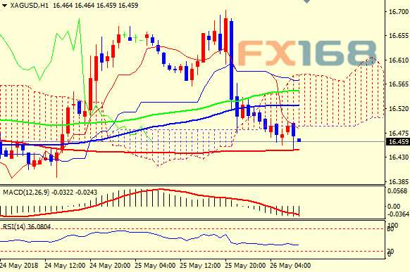 F 現(xiàn)貨白銀周一(5月28日)盤中,現(xiàn)貨白銀持續(xù)震蕩回落,因市場避險情緒降溫,盡管早盤美指回落,但是并未給銀價提供有效支撐,短線銀價正測試200小時均線的支撐,中長線級別來看,銀價有部分買盤支撐,不過受美指走強等因素打壓,銀價仍傾向震蕩。