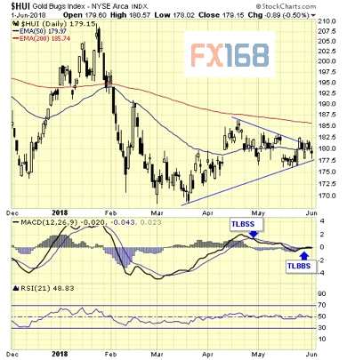 從金甲蟲指數(shù)HUI來看,黃金行業(yè)短期也出現(xiàn)買入信號。短期信號可以持續(xù)數(shù)天或數(shù)周,更適合交易員。