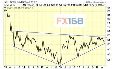 全球最大的黃金上市交易基金——SPDR GOLD SHARE(紐交所代碼GLD)多年的筑底形態(tài)正在形成中。