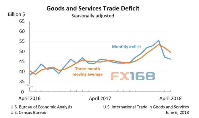 F 現(xiàn)貨黃金周三(6月6日)繼續(xù)小幅上漲,美市盤中最高上探至1301.65美元/盎司,金價已逐漸擺脫此前的頹勢,但短線振幅加劇,仍運行在1300下方。周三美元下跌,美元指數(shù)已跌破94整數(shù)關(guān)口,這對黃金形成支撐。日內(nèi)公布的美國4月貿(mào)易帳為下跌462億美元,低于前值及預(yù)期-490,出口創(chuàng)紀錄新高,4月貿(mào)易赤字降至七個月新低,其中,商品與服務(wù)出口環(huán)比增長0.3%,總額至紀錄新高的2112億美元,主要由于工業(yè)用品、燃料油和石油制品等原材料的出口共增加13億美元,大豆與玉米的貨運量各增長3億美元。特朗普的貿(mào)易保護主義政策正在奏效。