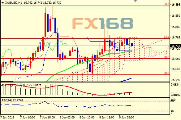 摘要: F周一(6月11日)亞市盤中,現(xiàn)貨白銀回落至16.74美元附近,隨著美元跌勢暫緩,白銀的漲勢也受到一定的限制,從整體來看,美聯(lián)儲決議之前,白銀依舊傾向震蕩上行。(現(xiàn)貨白銀1小時圖,來源:)技術面分析: