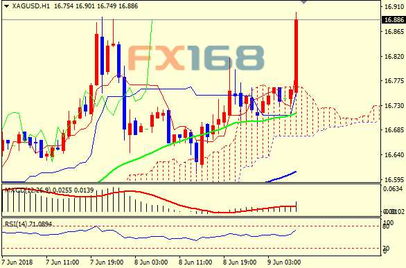 摘要: F周一(6月11日)亞市盤中,現(xiàn)貨白銀短線拉升,最高觸及16.90美元/盎司,白銀盤中反彈因美元指數(shù)回落。目前,投資者看漲白銀的情緒再度升溫,銀價(jià)日內(nèi)有望測(cè)試17美元/盎司整數(shù)關(guān)。(現(xiàn)貨白銀1小時(shí)圖,